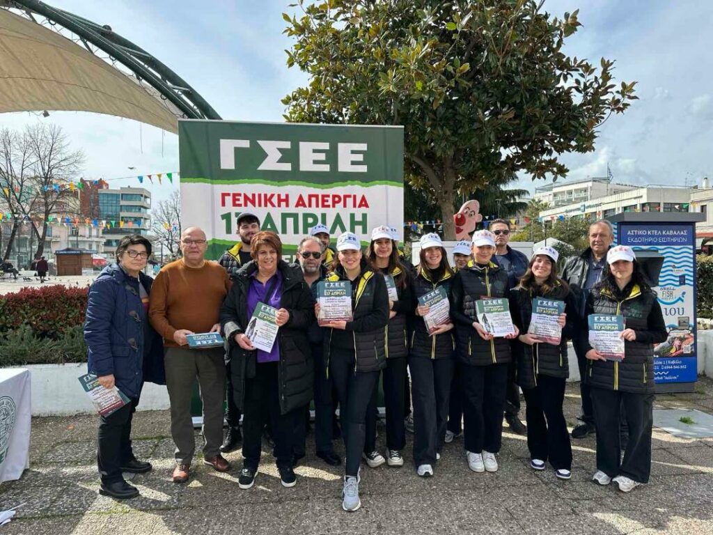«Στην Καβάλα βρέθηκε την Τρίτη 12 Μαρτίου 2024 το κλιμάκιο της ΓΣΕΕ, συνεχίζοντας την ενημερωτική καμπάνια της Συνομοσπονδίας ενόψει της Γενικής Απεργίας στης 17 Απριλίου 2024.
